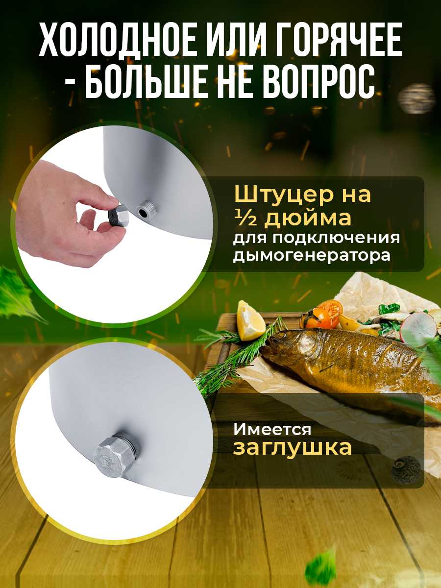- + горячее холодное копчение, опилки и шпагат в подарок,брашура рецептов.