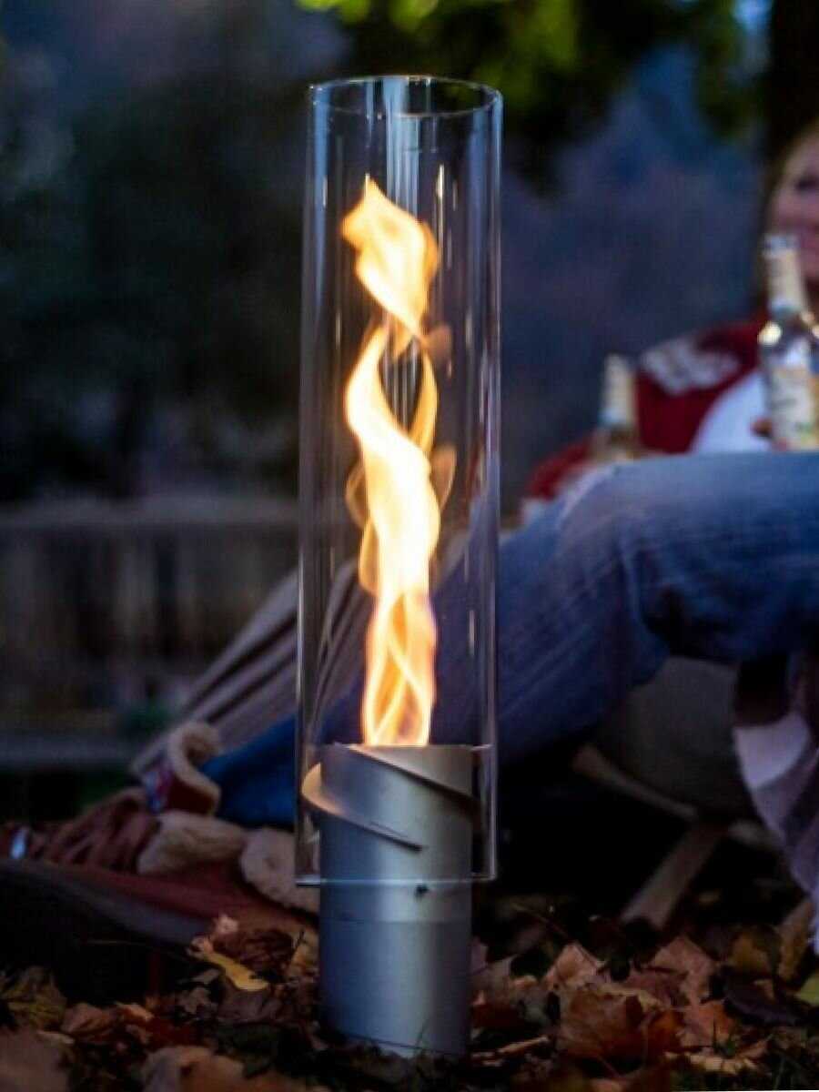 Горения хватает на 38 минут, думаю что все зависит от топлива. Я чувствую тепло на расстоянии 20 сантиметров от него. В темноте это настоящее огненное шоу, вихрь! Очень залипательно.