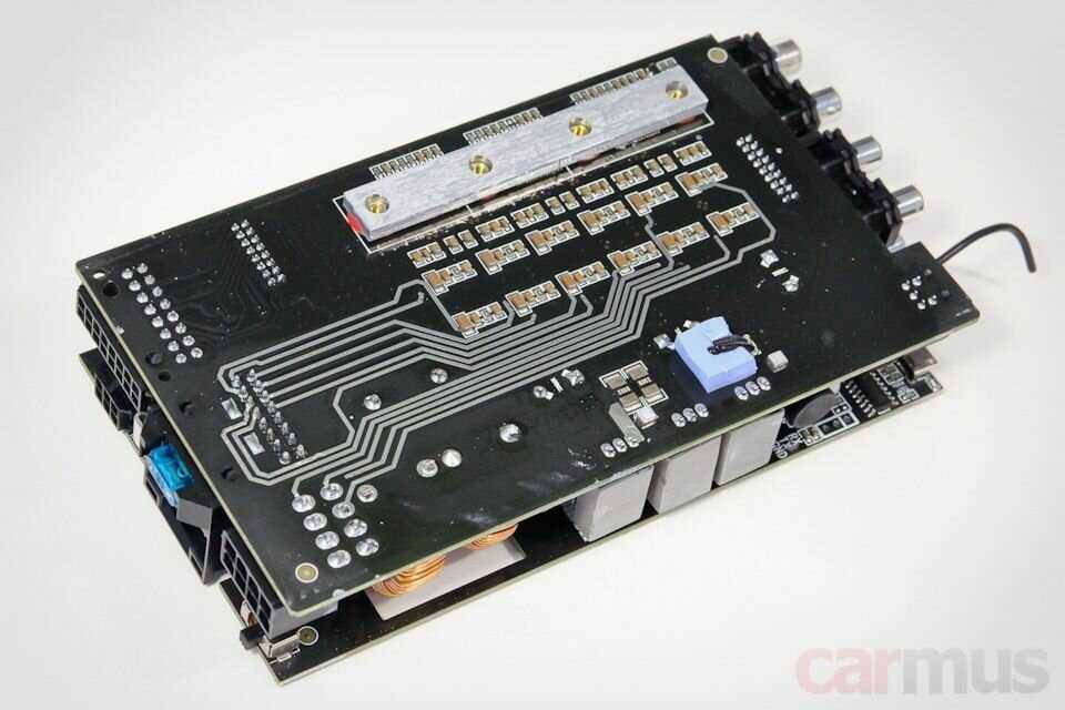 - + очень компактный. поместился. под головное устройство. для штатных колонок. в самый раз.