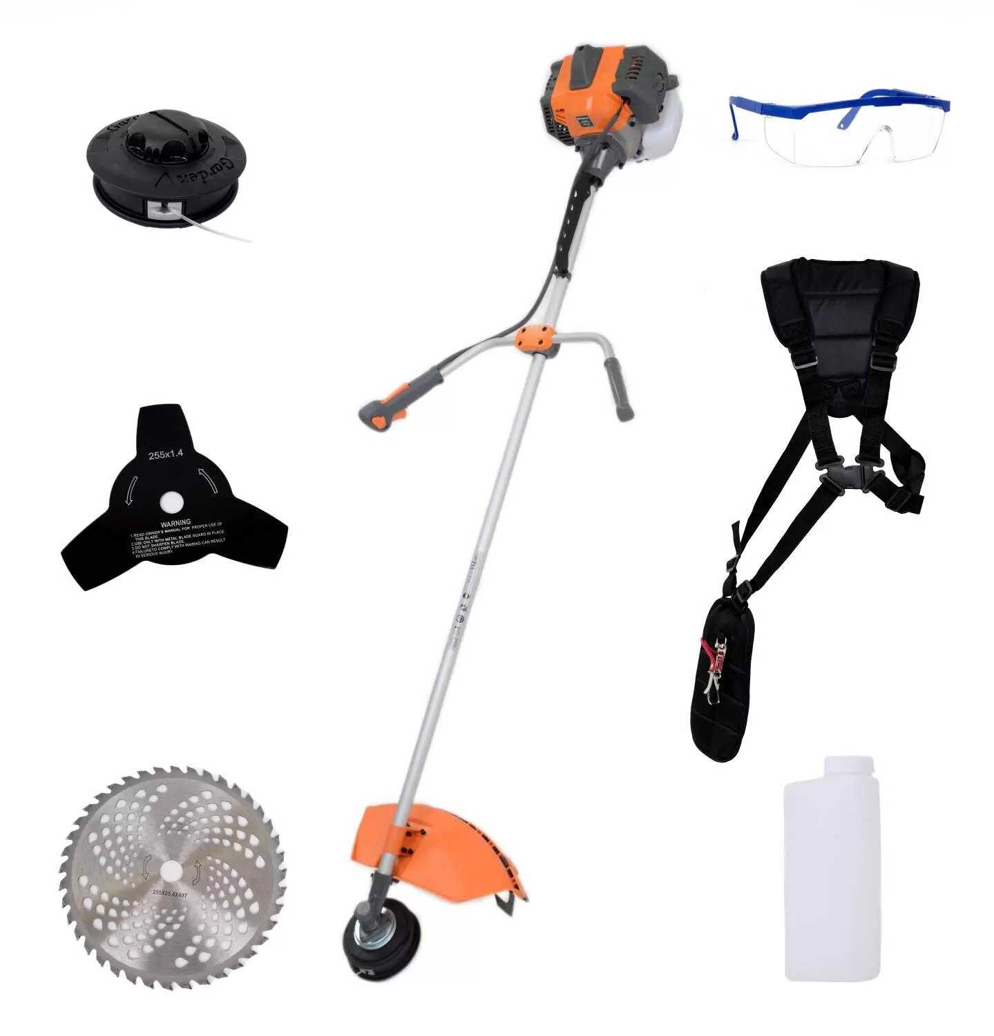 Качество удивило. Нигде нет лишнего облоя или каких-либо неприятных моментов. Все детали аккуратны. Собирается по инструкции легко, быстро и понятно. Мерная канистра в коробке есть. Купил только бензин 92 и масло полусинтетику для бензокосы. Заводится легко, без лишних дерганий. Траву не приглаживает, а действительно косит. После отработки 2-х бачков, на следующий день поставил диск и косил уже траву, которая была выше крыши. За 2 дня покосил всё, что можно. Высоченную траву диском косит очень продуктивно. Так и работал 12-15 мин, потом перекур 30 мин и более. На высокой траве, при работе диском, расход даже меньше, чем с леской. Кусты не пилил. Это действительно мощный инструмент! До испытания трехлопастного железного ножа дело пока не дошло.