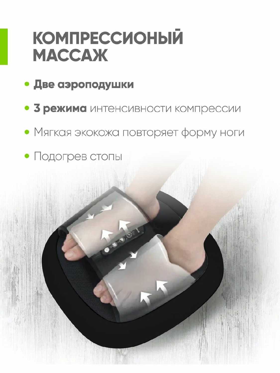 Замечательный массаж ног, сжимает и массажирует всю стопу. Очень довольна. Рекомендую.
