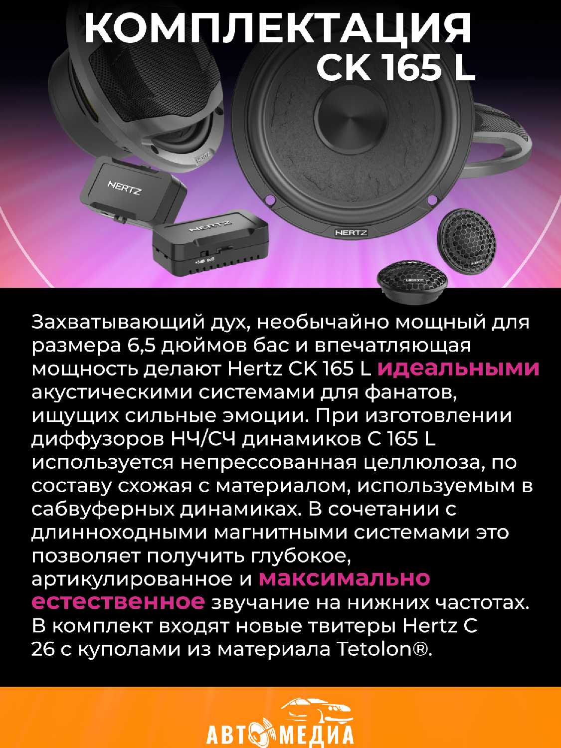 | Комплектация : | НЧ/СЧ-динамики C 165 L ВЧ-динамики C 26 Компактные проводные кроссоверы CCX 2 W и CCX 2 T |