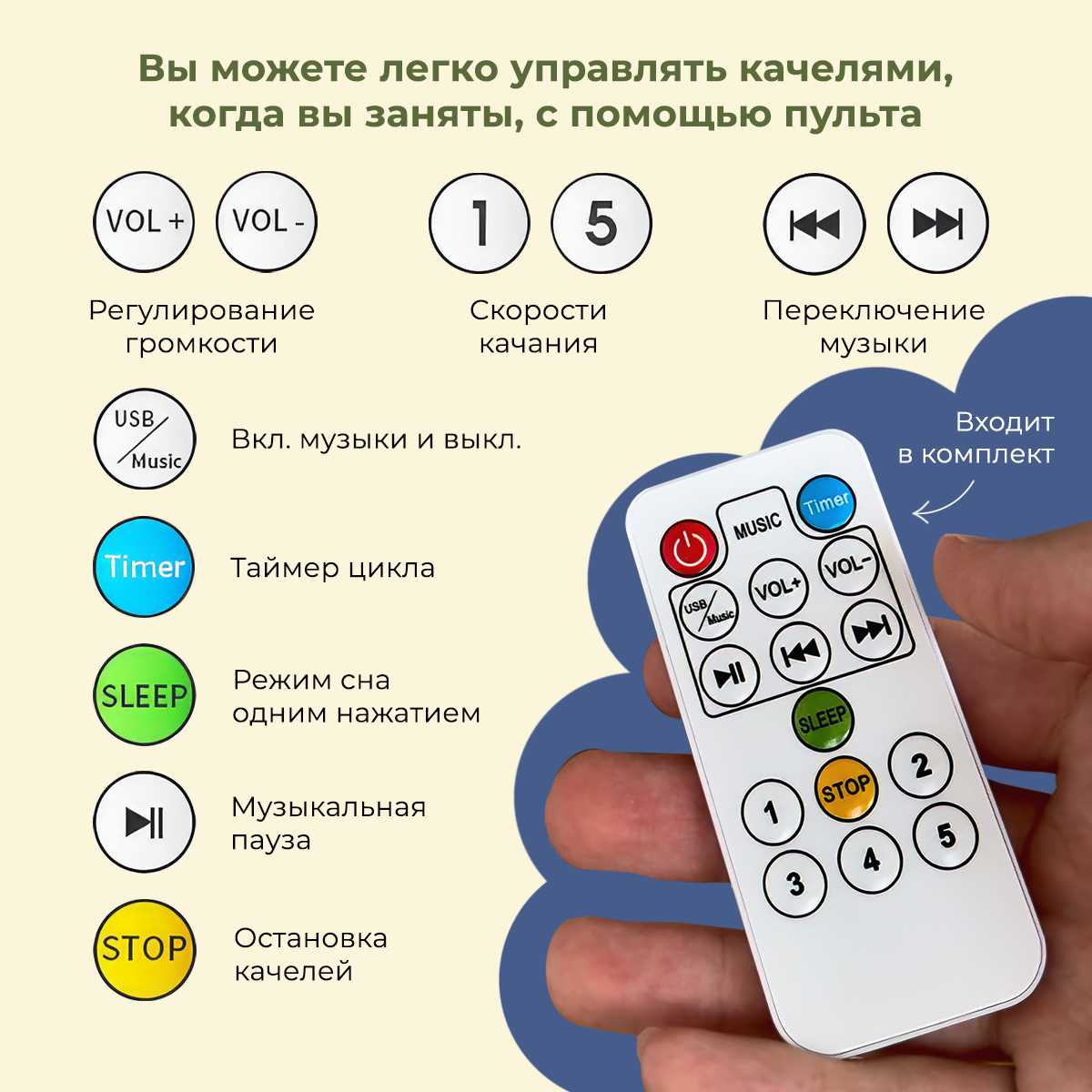 Особенности : | работа от батареек, таймер музыки, таймер укачивания |