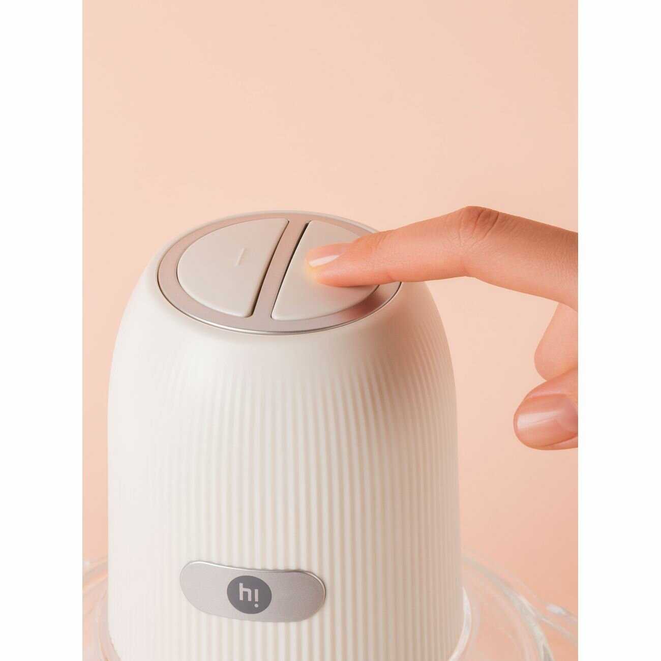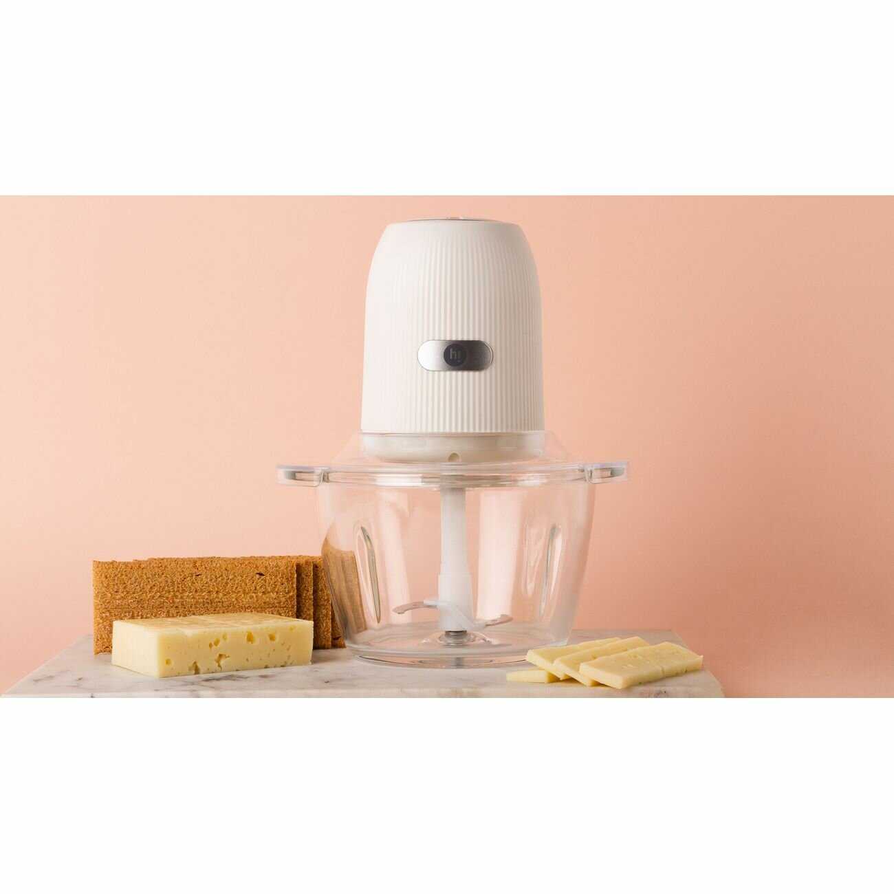 Отличная электромельничка, не громоздкая, аккуратная, занимает мало места, удобна в применении, красивая, имеется двухскоростной режим управления, лезвия двухуровневые, острые, скорости вполне хватает для измельчения продуктов как сырых, так и отварных, легко перемалывает орехи и делает пюре, очень проста в сборке, легко моется и собирается! Брали на подарок, в выборе не прогадали! С бонусами от М.видео вышло дешево. Спасибо, М.видео, за качественный товар, надеюсь, что прослужит долго! Не особо шумная! По поверхности не скользит! Берите, не пожалеете!