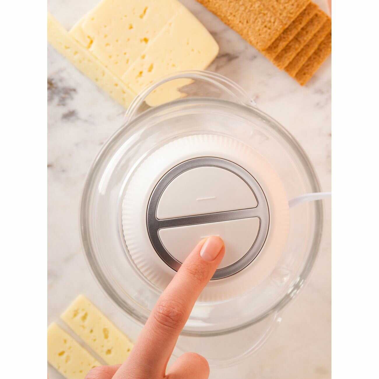 - + Удобство в использовании, стеклянная чаша