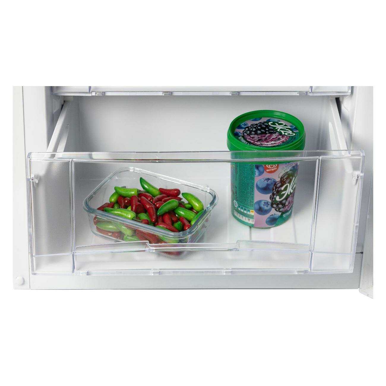 - Морозильная камера с двумя выдвижными ящиками обеспечивает хранение большего объема продуктов без лишнего льда, сохраняя их свежими дольше.