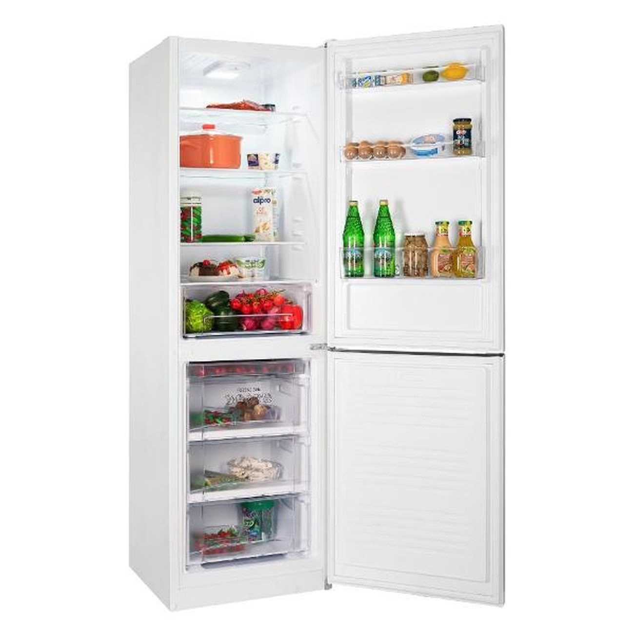 Модель отличается продуманной внутренней компоновкой. Холодильная камера оснащена четырьмя стеклянными полками с регулируемой высотой, что позволяет адаптировать пространство под крупную посуду (например, 3-литровые кастрюли). В морозилке три объёмных ящика и узкий лоток для плоских продуктов (блины, пельмени), что упрощает сортировку. Однако фиксированные посадочные места для полок ограничивают гибкость. Пользователи хвалят большой овощной ящик и боковые контейнеры на дверце, но критикуют запотевание стеклянных поверхностей из-за капельной системы разморозки. Дверь с возможностью перевешивания (процесс занимает до 1.5 часов) и отсутствие ручек — плюсы для эргономики, но короткий кабель питания (менее 1.5 м) осложняет установку.