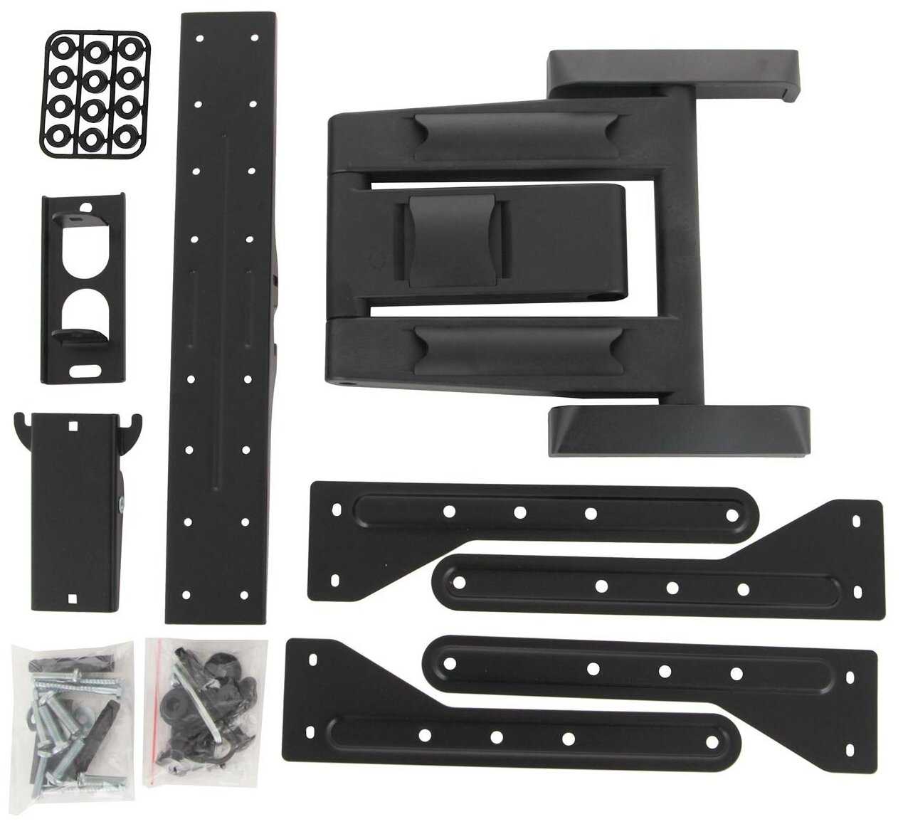 хорошие крепежи достаточно мощный кронштейн. 50дюймовый телек нормально висит не прогибает. Фиксируется крепко. Поворотный механизм работает идеально