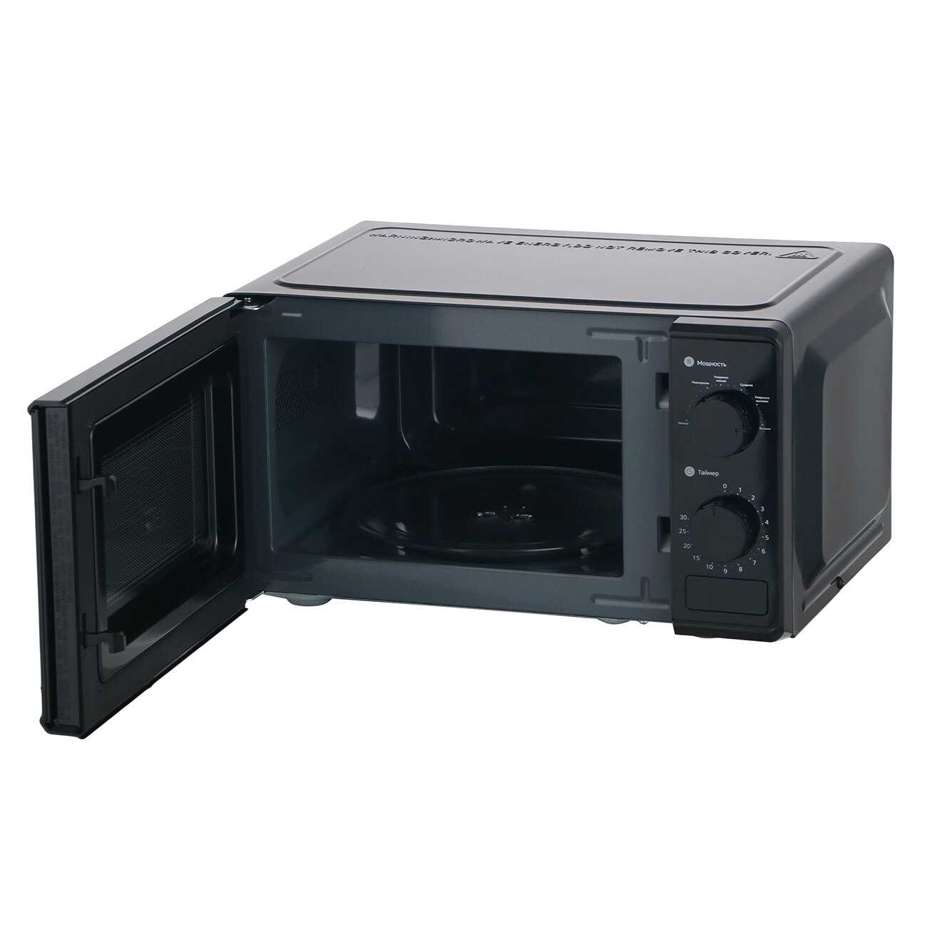 - Уровень шума — 55 дБ, что сравнимо с тихим разговором: мотор вращения тарелки и вентилятор не мешают даже в ночное время.
