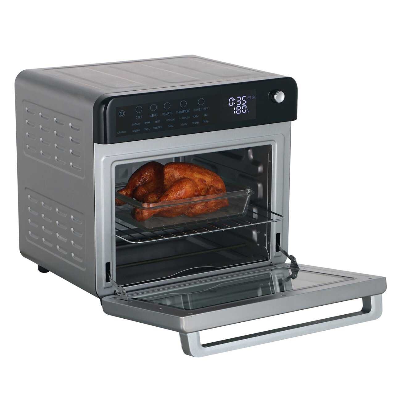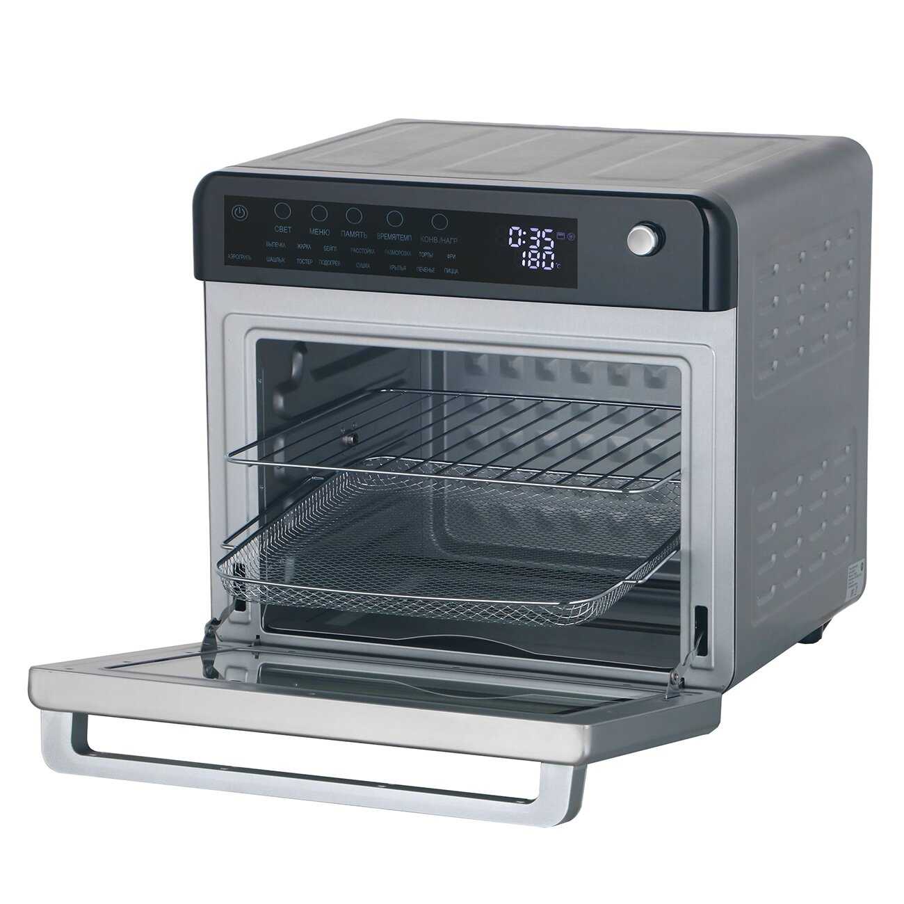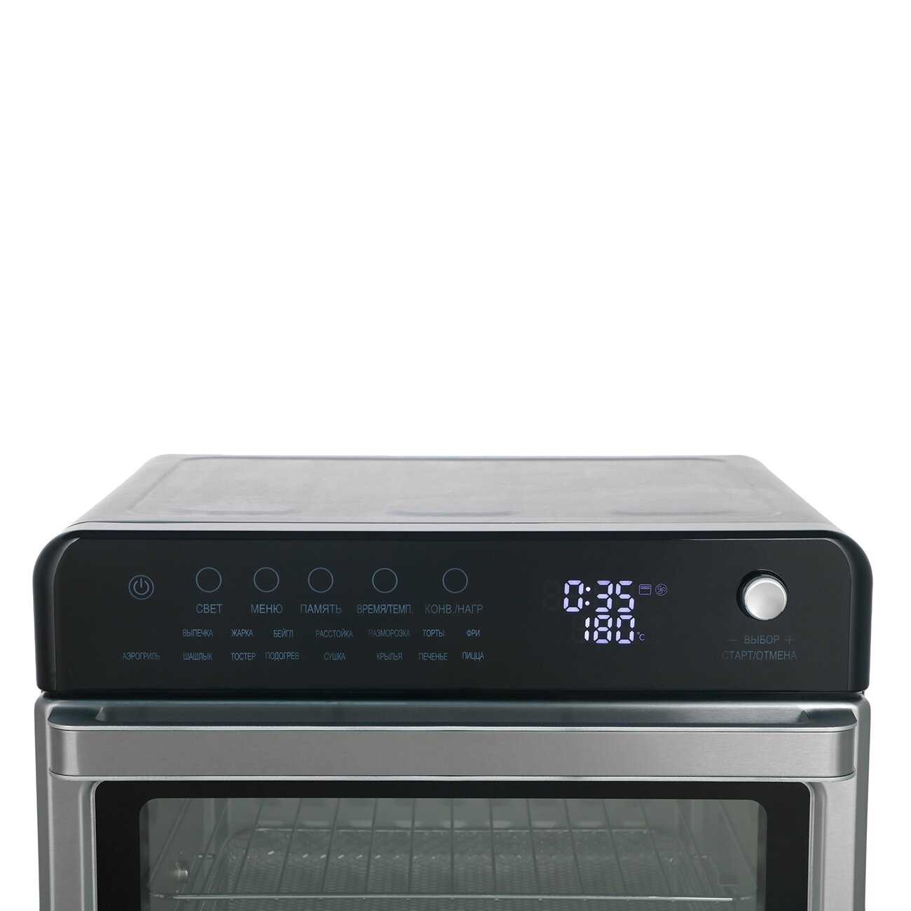 Режимы работы : | верхний нагрев, верхний+нижний нагрев, конвекция, нижний нагрев, поддержание температуры, размораживание |