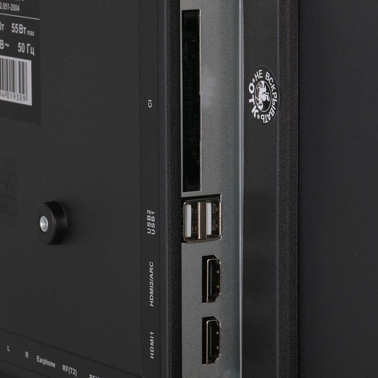 Аппаратная производительность и ограничения Слабые места устройства — 1 ГБ оперативной памяти и устаревший процессор, что вызывает заметные задержки при переключении каналов (до 2-3 секунд) и периодические зависания интерфейса. Владельцы сообщают о необходимости ручной перезагрузки при "выпадении" из приложений или потере сети. Технически телевизор поддерживает запись контента на внешние носители через USB, но реализация Bluetooth вызывает вопросы — функция неактивна в настройках, несмотря на декларированную поддержку. Задняя панель из тонкого пластика осложняет монтаж на кронштейн.