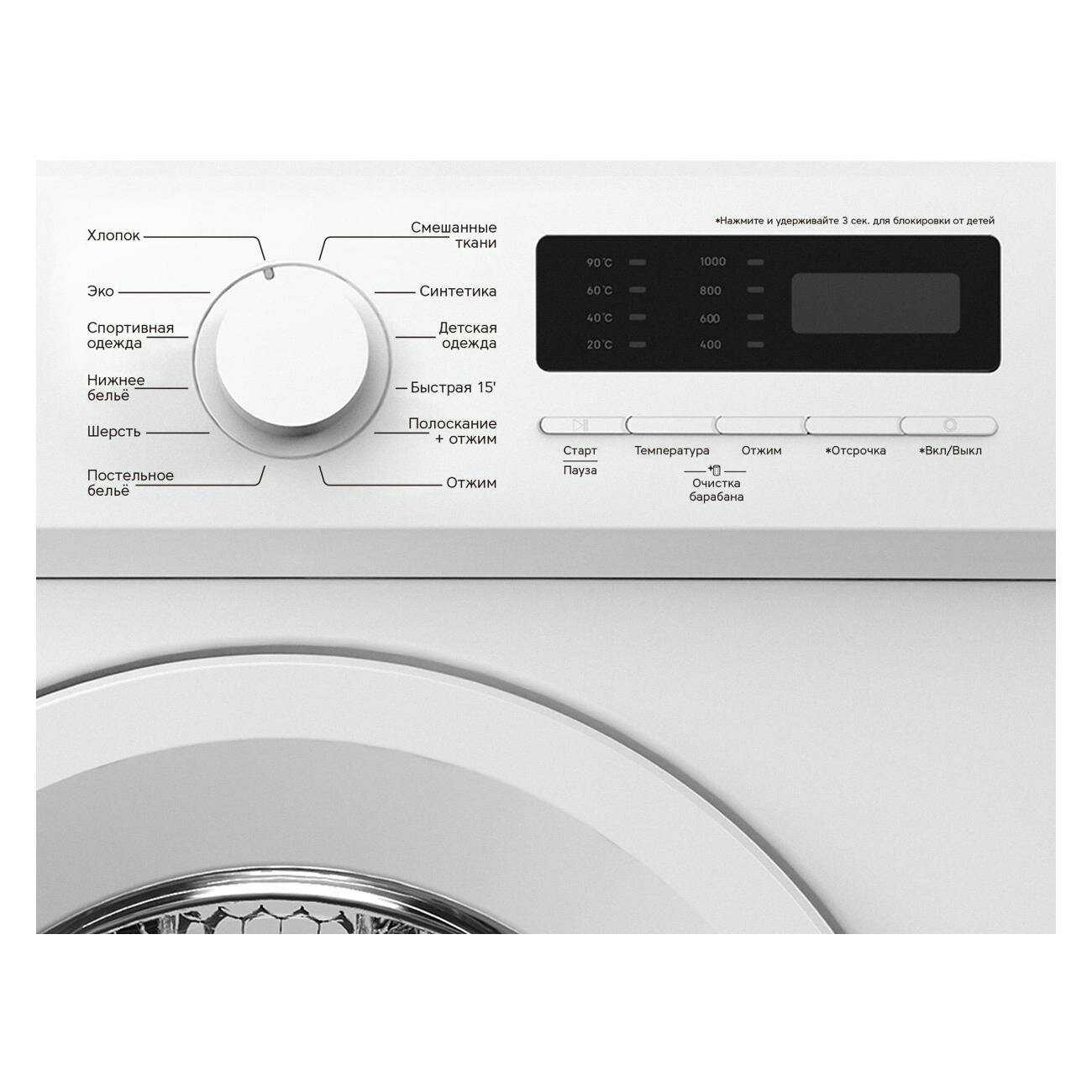 - Широкий выбор специализированных режимов (включая очистку барабана).
