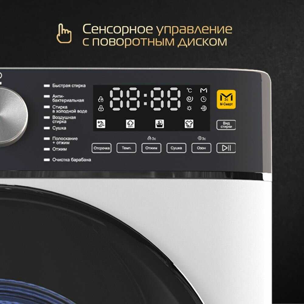 - Подсветка барабана (синяя/белая) и контрастный дизайн (белый корпус + черный люк) улучшают эргономику.