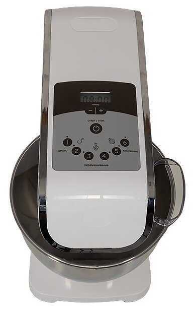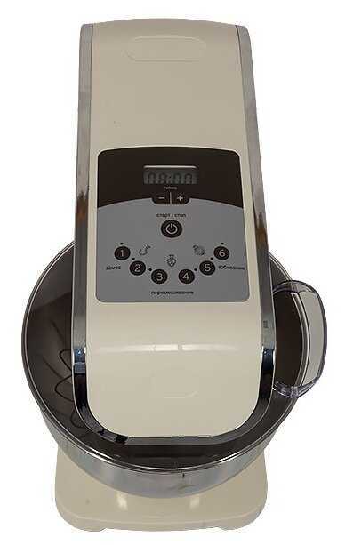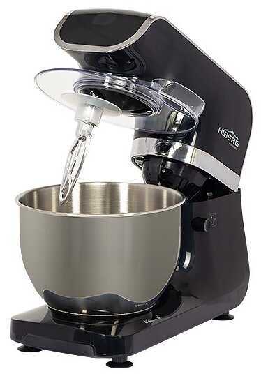 - + В комплекте есть крюк для теста, венчик для взбивания, удобная большая чаша, плавный запуск двигателя
