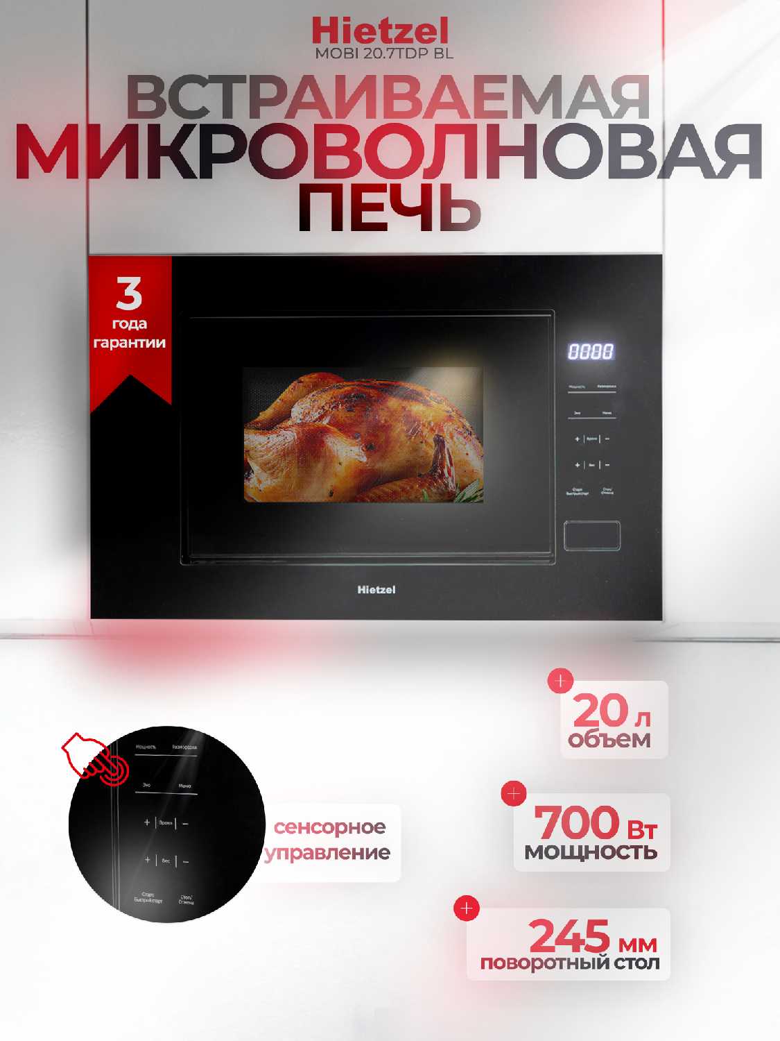 Отзывы о Микроволновая печь встраиваемая Hietzel MOBI 20.7TDP (BL)