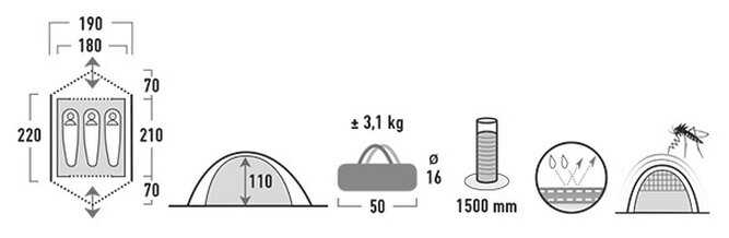 Отзывы о Палатка трекинговая трехместная High Peak Kingston 3