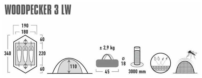 Характеристи High Peak Woodpecker 3 LW, pesto/red