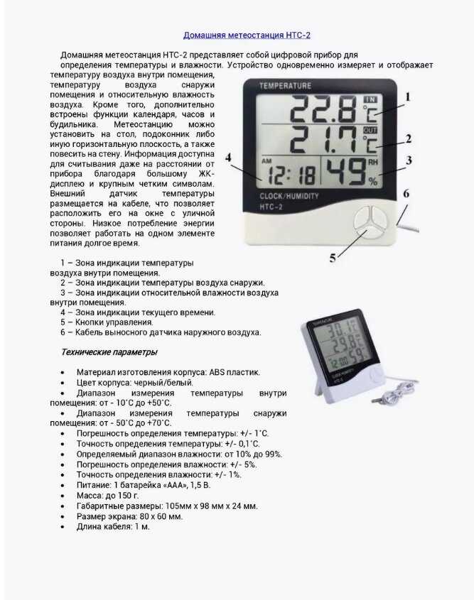 Обзор HIGH TECH Цифровой термометр гигрометр часы-метеостанция*: