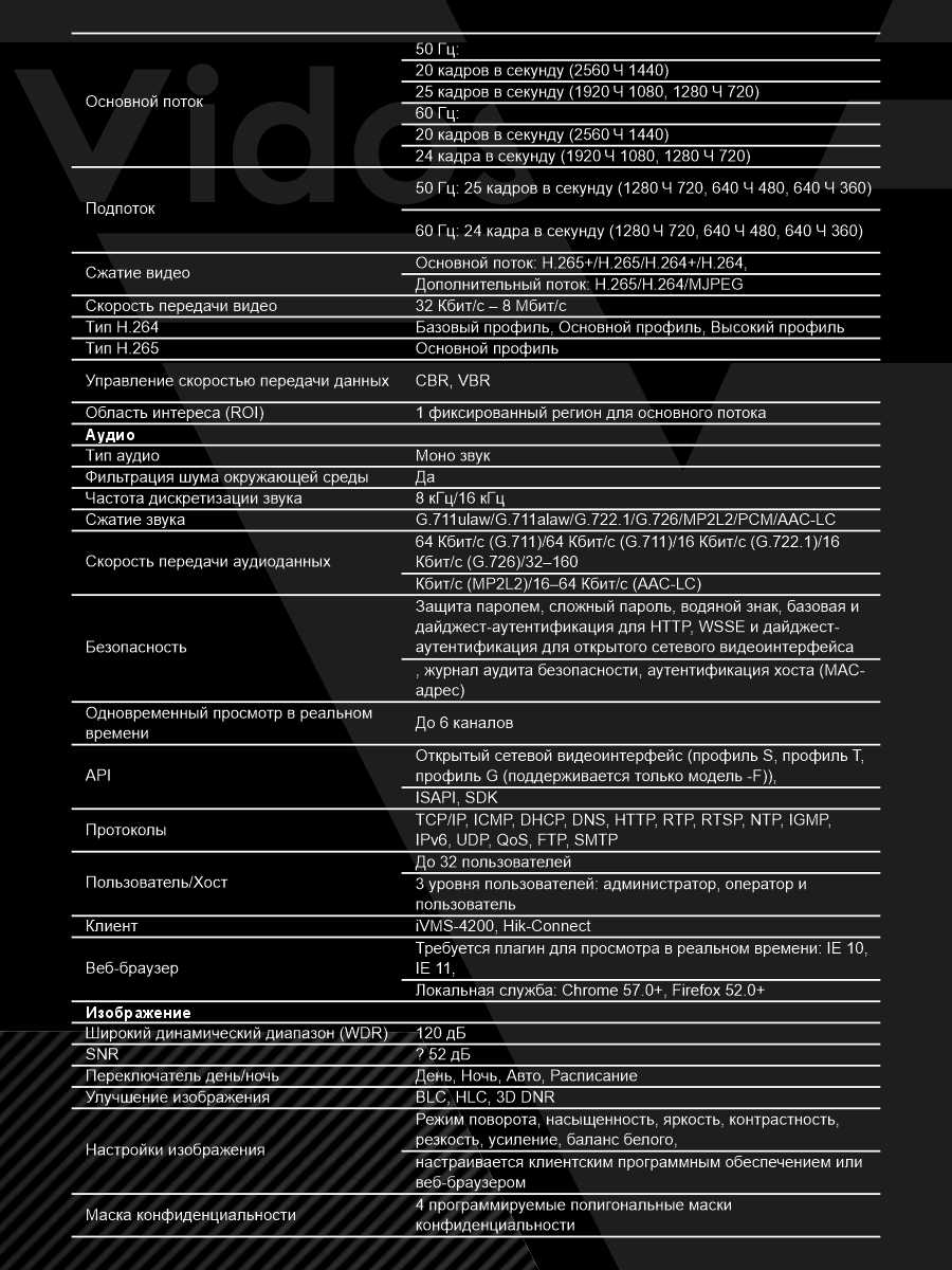 | Поддержка видеокодеков : | H.264, H.264+, H.265, H.265+, MJPEG |