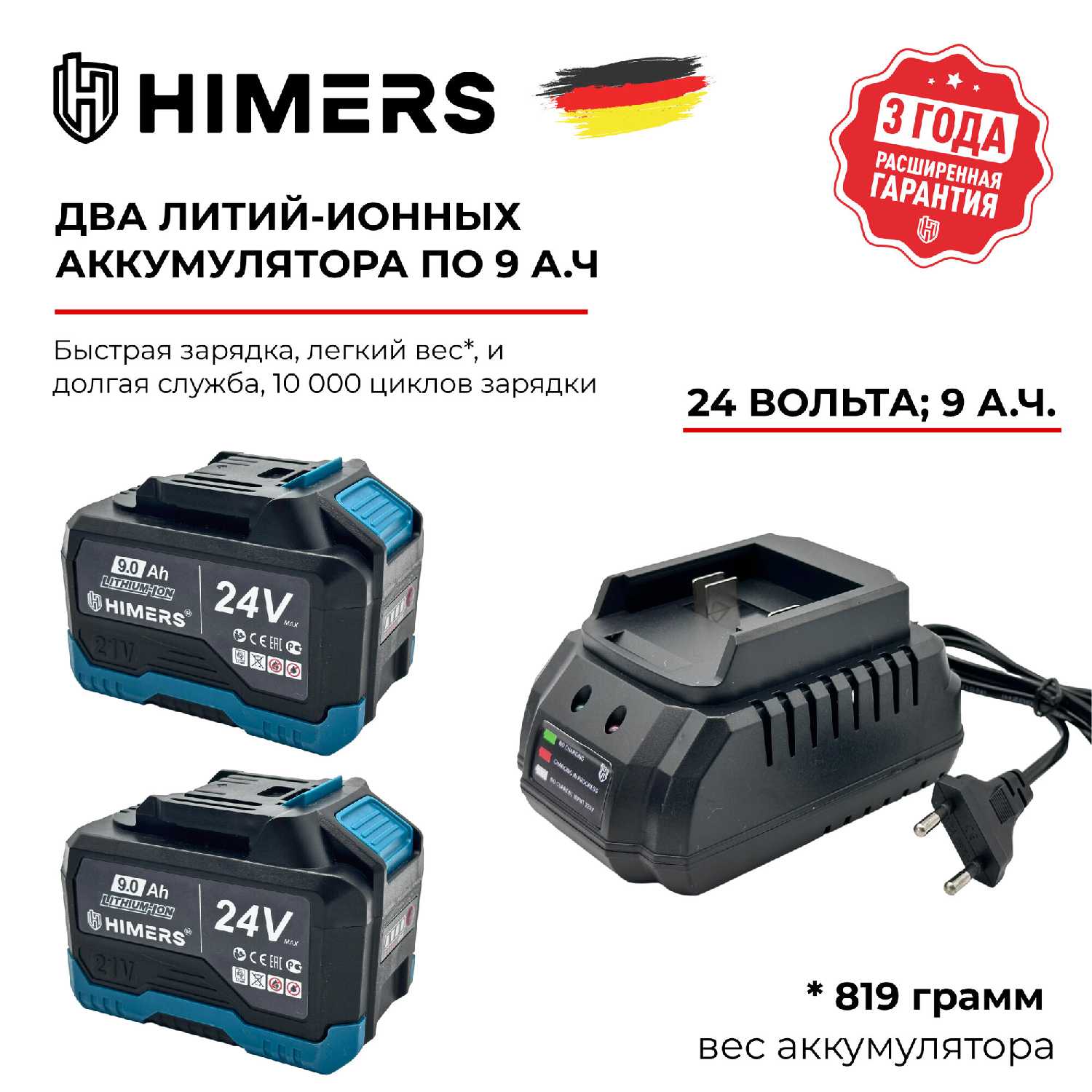 - В комплект входят все заявленные аксессуары: аккумуляторы, зарядное устройство, ключ для УШМ и гарантийный талон.