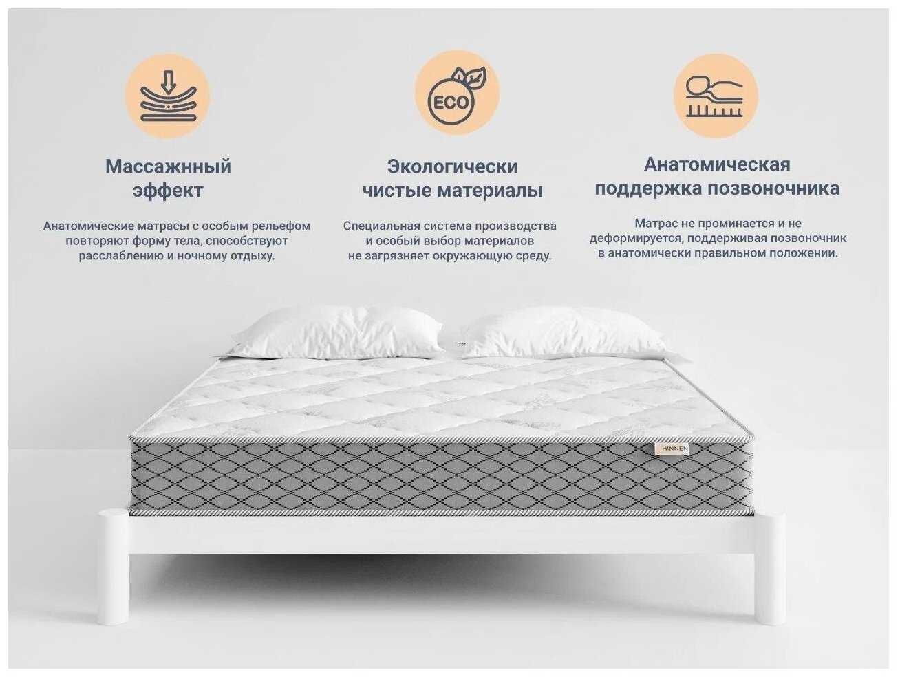 - + Отличный матрас, вмеру мягкий,плюс чувствуется ребристая поверхность и правда,массажный эффект,высокий,добротный. Покупала для сына (10 лет) очень доволен. Доставка классная,привезли в свернутом виде,раскрыла упаковку и он расправился,как будто воздухом наполнился. Спасибо большое!