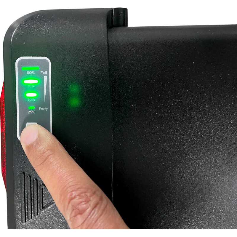 - Литий-ионная батарея 10.4 Ач с ключевой фиксацией извлекается за 10 секунд, позволяя заряжать ее отдельно в помещении, что предотвращает воздействие влаги и пыли на электронику во время стоянки на улице.