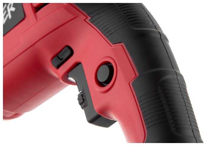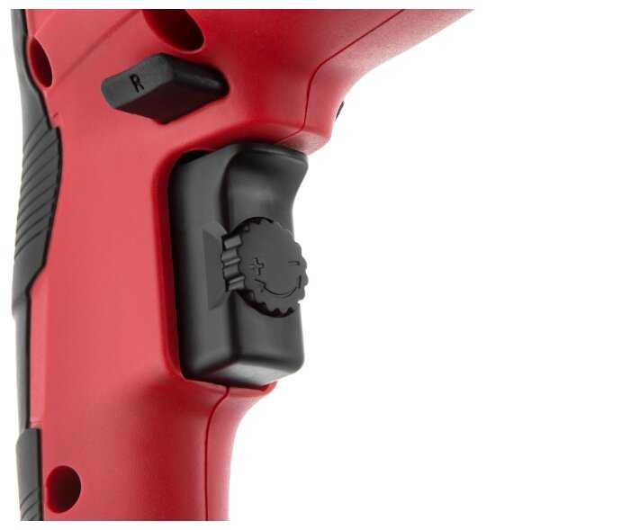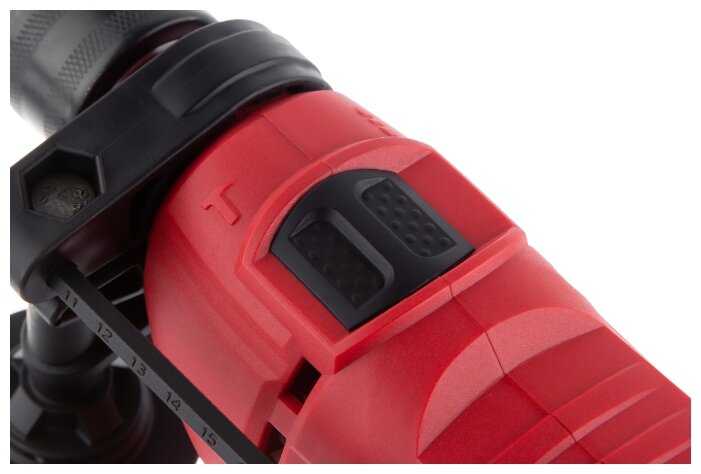 - + Сборка мне нравиться. Ручка прорезинена и рука не скользит, так же и место дополнительного упора тоже прорезинено. Регулировка оборотов электронная, от силы нажатия, удобно на самом деле, да и эта же технология используется в более дорогих ударных дрелях.