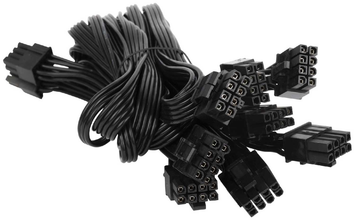 Зачем то 2 кабеля 4+4 для питания процессора и 6 разъемов 6+2 для pci, в итоге одно гнездо свободно на БП
