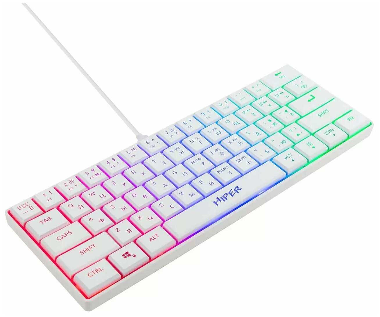 - + Очень компактная клавиатура! Равномерная и яркая подсветка, отличная сборка!