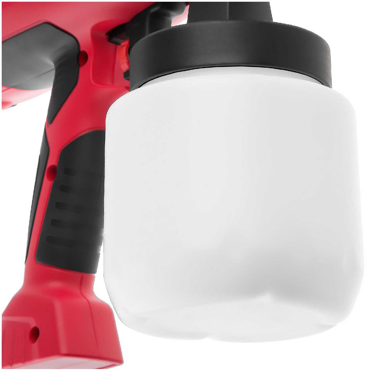 - Покраска 50 м² забора за 1 час за счет мощного распыления и бачка на 800-1000 мл.
