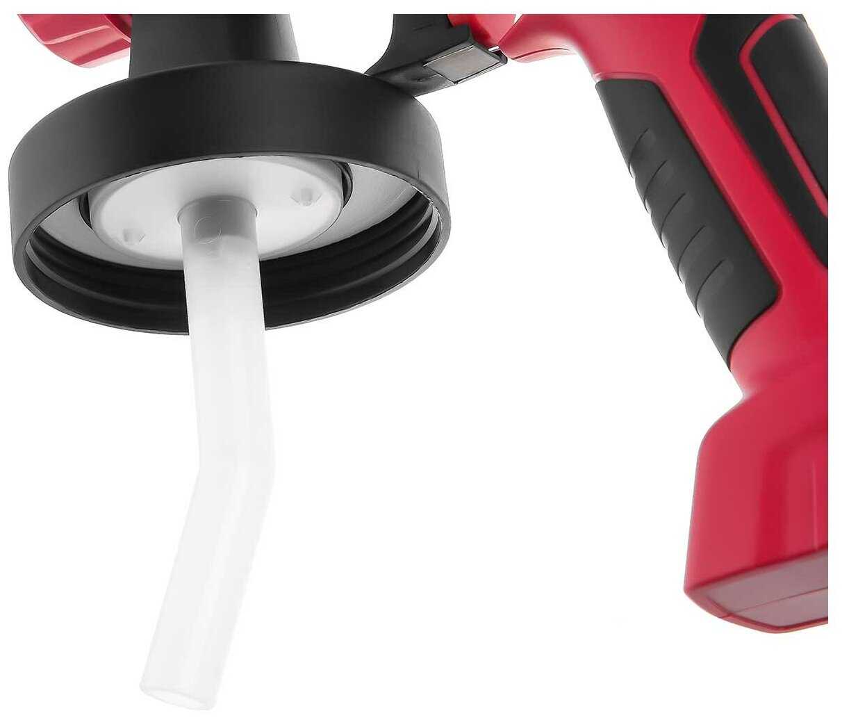 Работа с материалами разной вязкости Заявленные продавцом параметры вязкости (до 120 Дин) не соответствуют реальным возможностям. Согласно инструкции и практическому опыту, максимальная вязкость не должна превышать 35 Дин. Масляные составы и битумные лаки распыляются с заметным напряжением, особенно при низких температурах, что требует предварительного подогрева или разбавления. Акриловые краски и водные эмульсии наносятся оптимально при правильном разбавлении. Важная особенность — способность инструмента работать с густыми составами без чрезмерного разведения, что выгодно отличает его от воздушных аналогов.