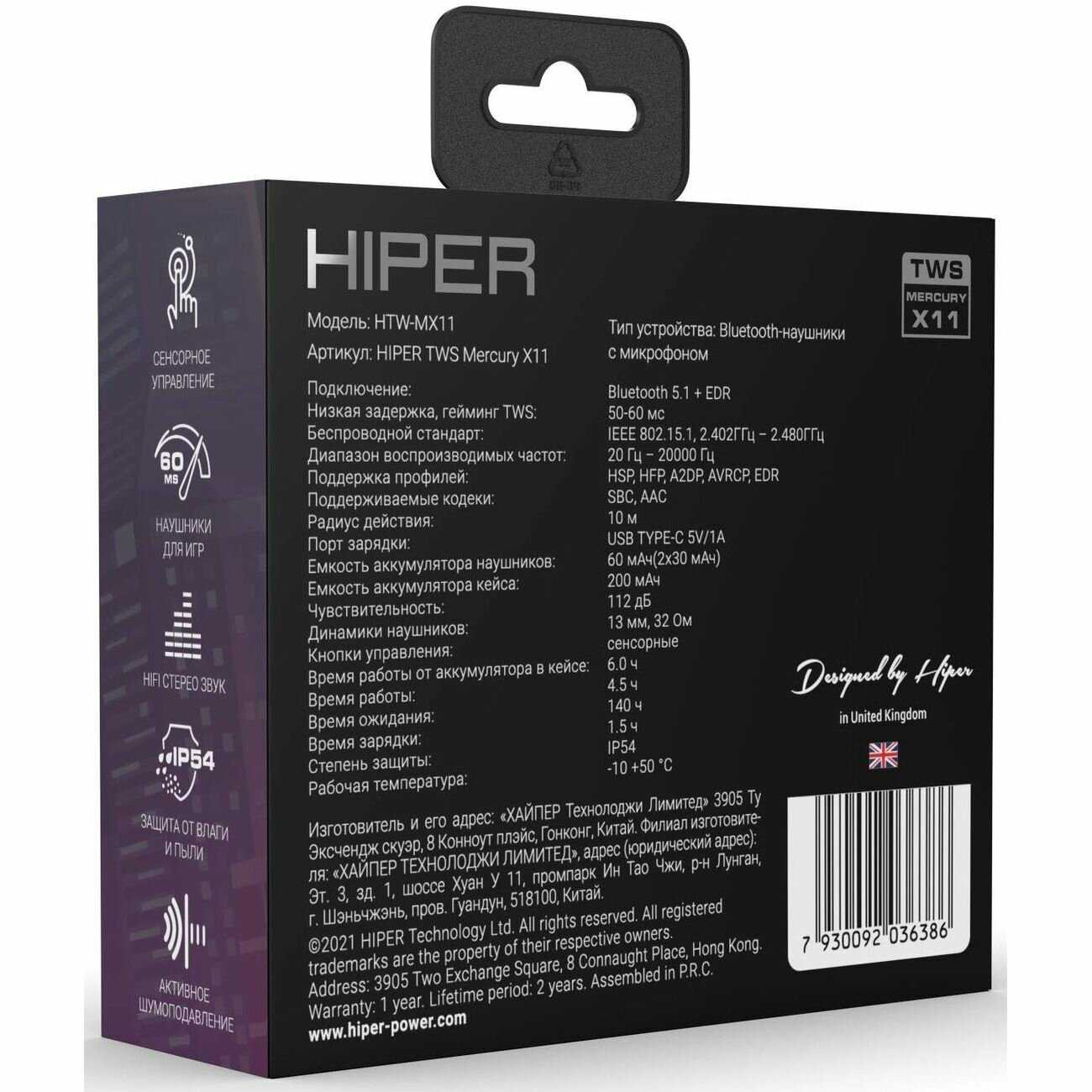 Отзывы о Наушники HIPER Mercury X11 (HTW-MX11)