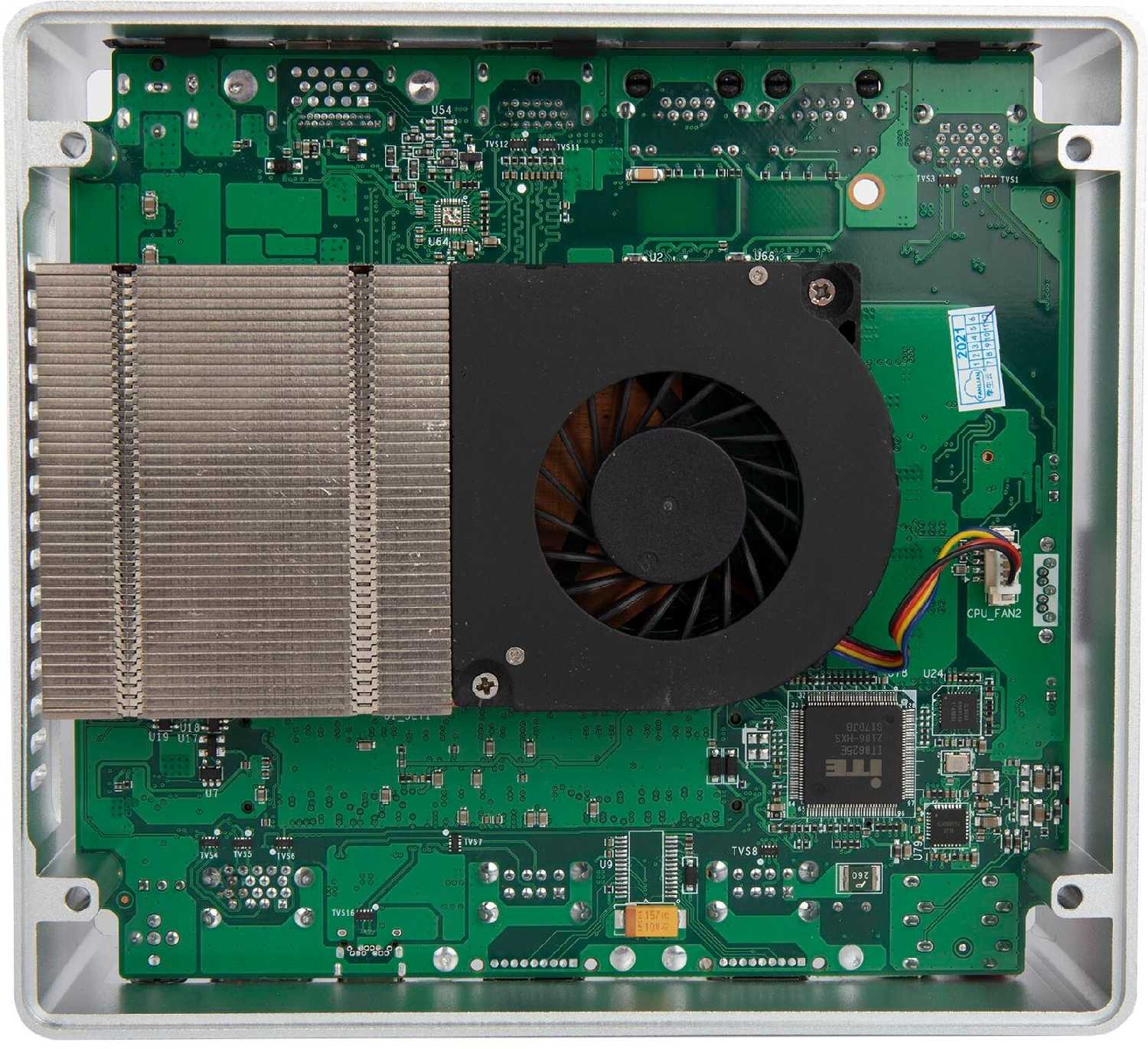 Много портов разных и важных! ;) Безвентиляторный! При этом, не греется вообще - средняя температура на проце ~45С. Проца нормально хватает для офисных задач. В комплекте крепление VESA и кабель для подключения SATA диска 2.5" внутрь.