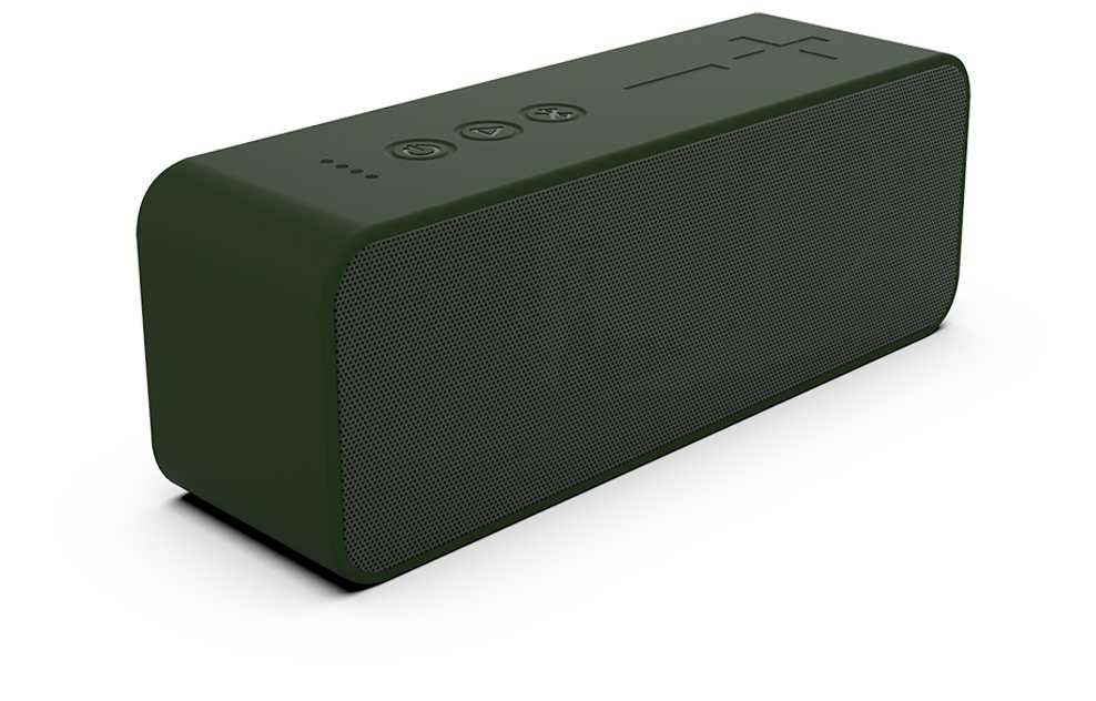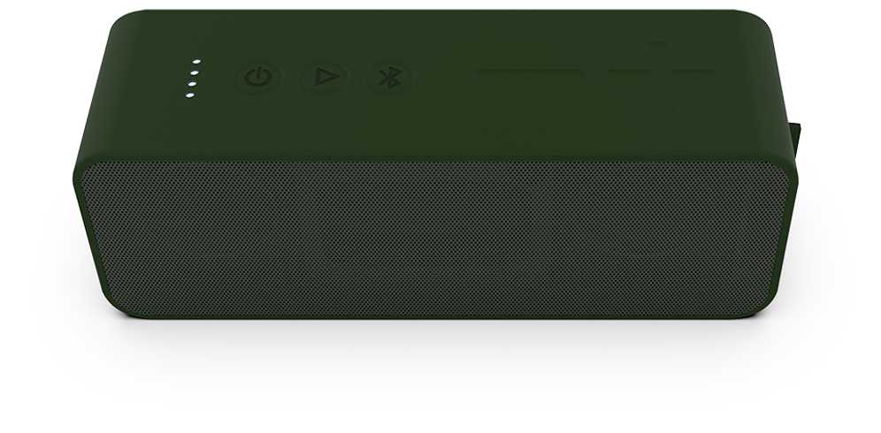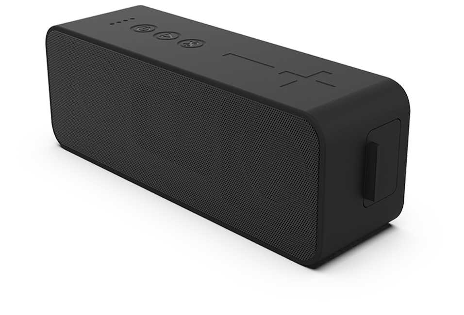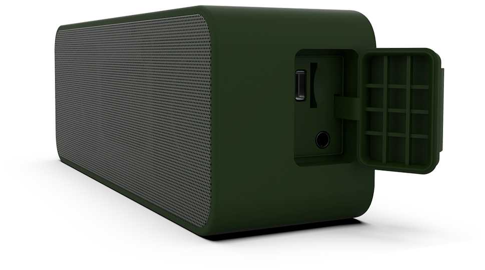 - + Компактная, крупные кнопки, наличие слота под карту памяти и входа mini-jack, есть имитация сабвуфера (низкие частоты передаются через резиновый компонент на задней стенке).