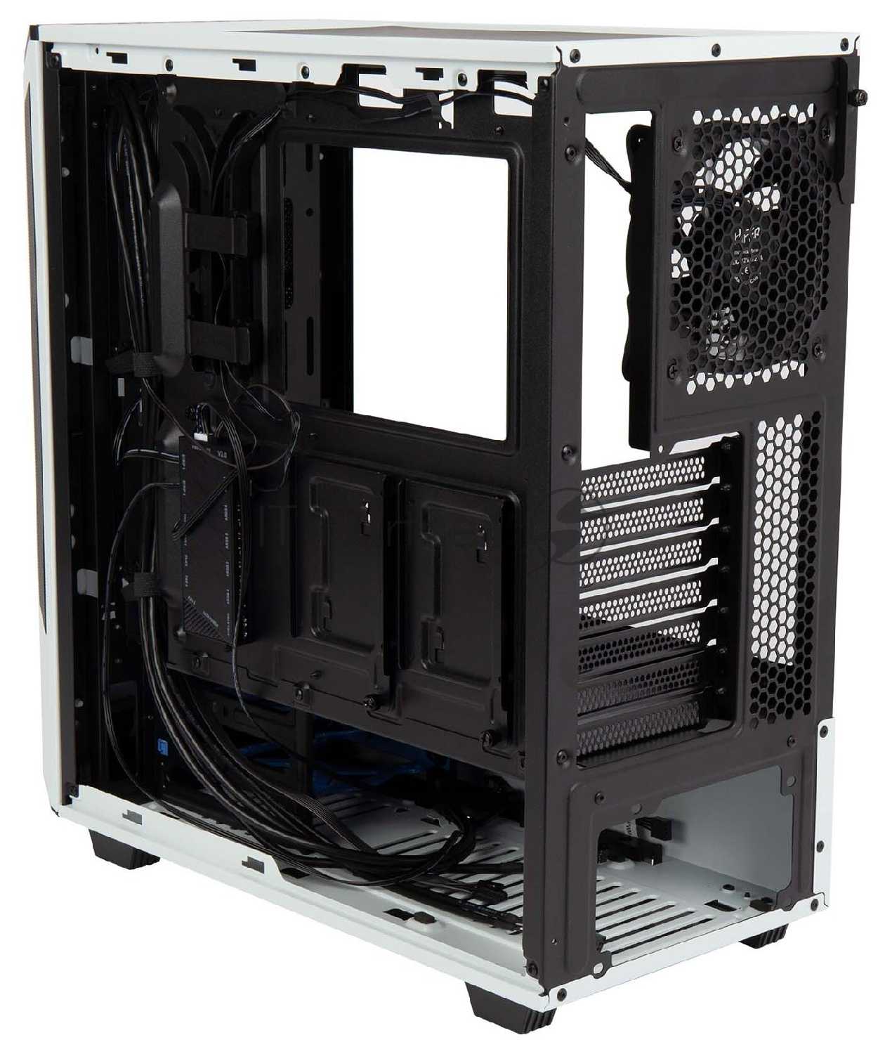- + Вместительный корпус с установкой БП снизу и выглядит он офигенно в живую. Белый ) именно в таком цвете и хотел, и места внутри достаточно для установки мощного железа, я купил 3060 карту и райзен 7 и кулер высокий. Шумоизоляция хорошая кстати.