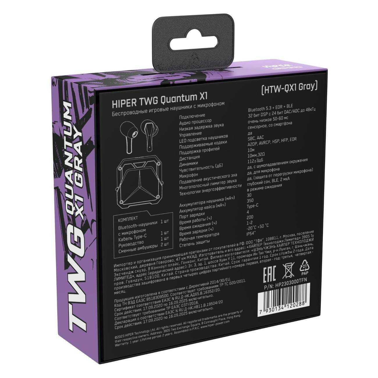 | Дополнительная информация : | серия - QUANTUM X1. Модель - HIP-HTW-QX1. Тип кабеля в комплекте - USB Type-C. Кабель для зарядки. Материал корпуса - пластик. Импеданс, Ом. Использование в качестве гарнитуры. Игровой и музыкальный режимы. Протестировано вместе с профессинальными геймерами. Bluetooth 5.3 + EDR + BLE. Сенсорное управление. Защита от брызг. Система активного подавления шума |