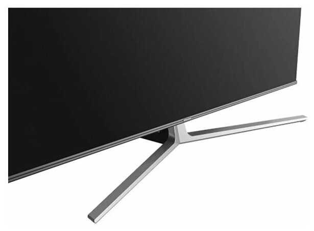 Конструкция телевизора продумана не до конца. Тонкие рамки и матовый корпус выглядят премиально, но ножки-подставки недостаточно устойчивы для 55-дюймовой панели — лучше сразу планировать настенный монтаж. Пульт ДУ с металлической отделкой стильный, но неэргономичный: кнопки Netflix и YouTube расположены так, что их легко перепутать вслепую.
