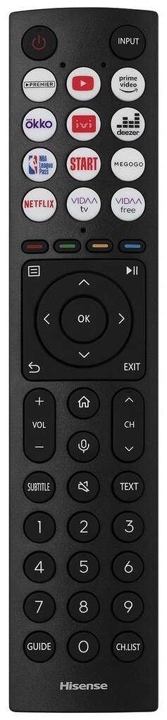 | Дополнительная информация : | энергопотребление в режиме ожидания: <0.5Вт, процессор - Quad Core/MT9900, операционная система VIDAA U6.0, функция шумоподавления, масштабирование изображения Ultra HD, технология динамической компенсации MEMC, телетекст, интернет браузер Odin, приложение Anyview Cast приложение Anyview Stream приложение Smartphone, режим Filmmaker, комплектация: телевизор руководство по эксплуатации пульт дистанционного управления, настольная подставка |