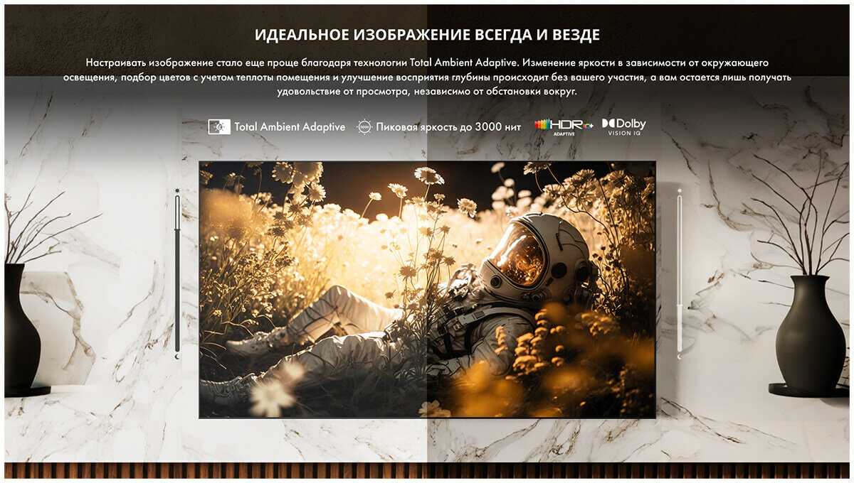 - Технология Quantum Dot Colour обеспечивает насыщенные, но естественные оттенки, близкие к OLED.