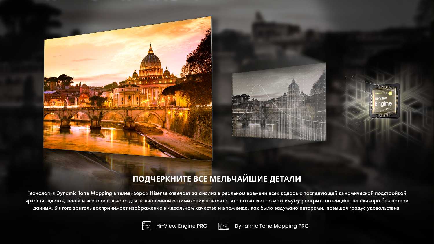 - Графический процессор Hi-View Engine повышает резкость SD-контента до псевдо-4K.