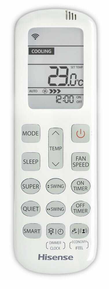 - + Экран показывает температуру, вертикальные/горизонтальные направляющие потока воздуха, режим сна и iFeel