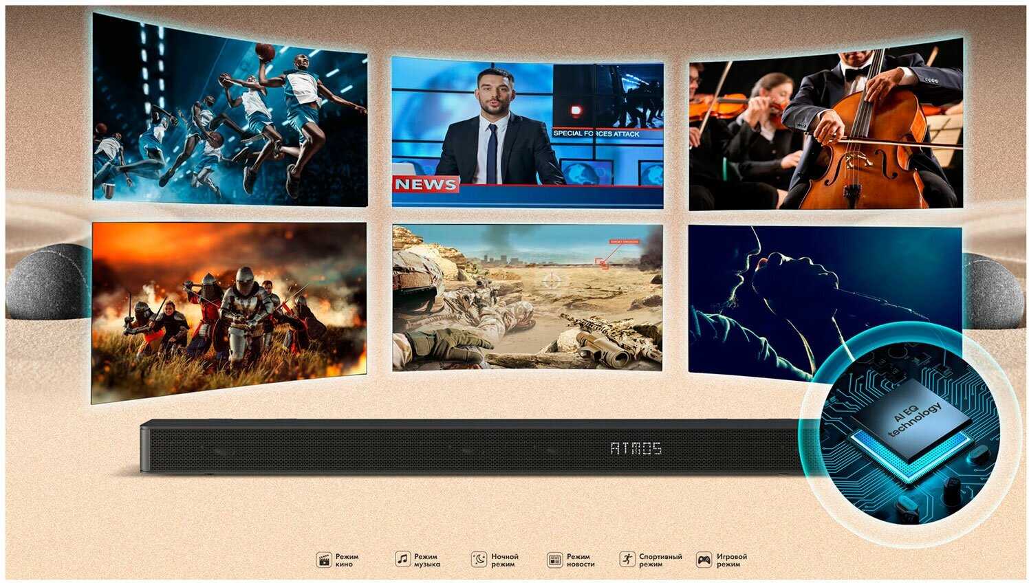 Звуковая панель выделяет центральный канал для речевых частот, обеспечивая чёткость диалогов даже при фоновых шумах. Однако некоторые пользователи отмечают, что при активации режима Surround речь может "теряться" среди эффектов. Для оптимизации рекомендуется выбирать предустановку "Новости" или вручную корректировать эквалайзер. -