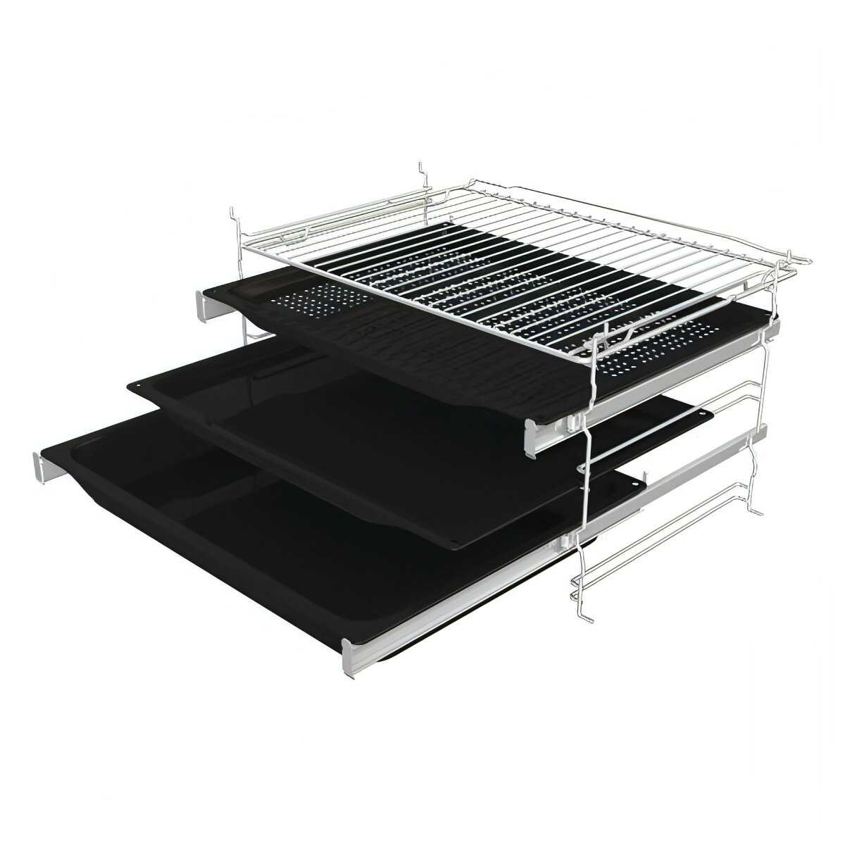 Телескопические направляющие на одном или двух уровнях позволяют плавно выдвигать противни, не рискуя обжечься или уронить блюдо, что особенно полезно для тяжёлых форм. Пользователи отмечают удобство при запекании больших кусков, но некоторые жалуются, что только один уровень — хотелось бы больше. Они крепко держат противни, и это улучшает повседневную готовку. В комплекте они уже установлены, без дополнительных усилий. -