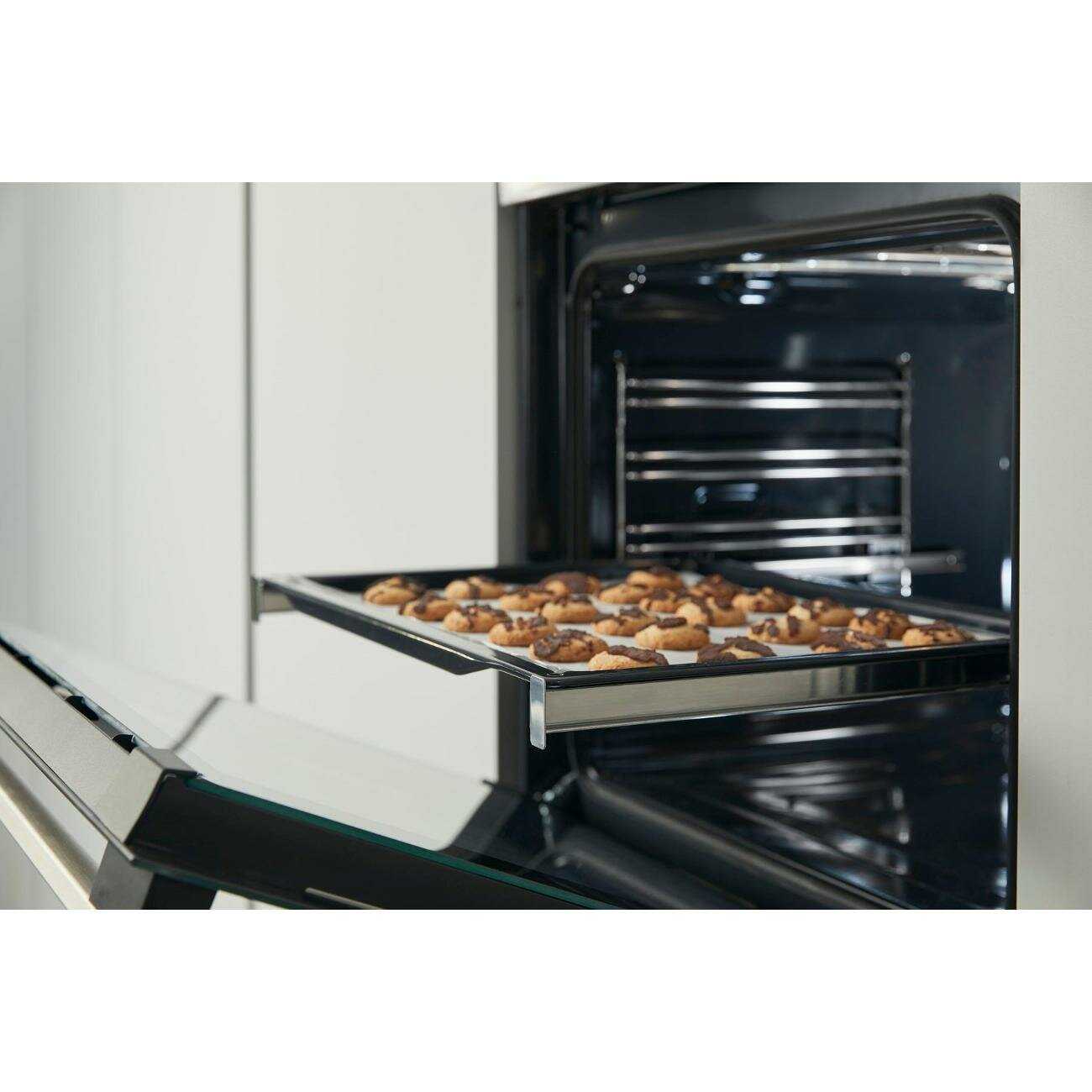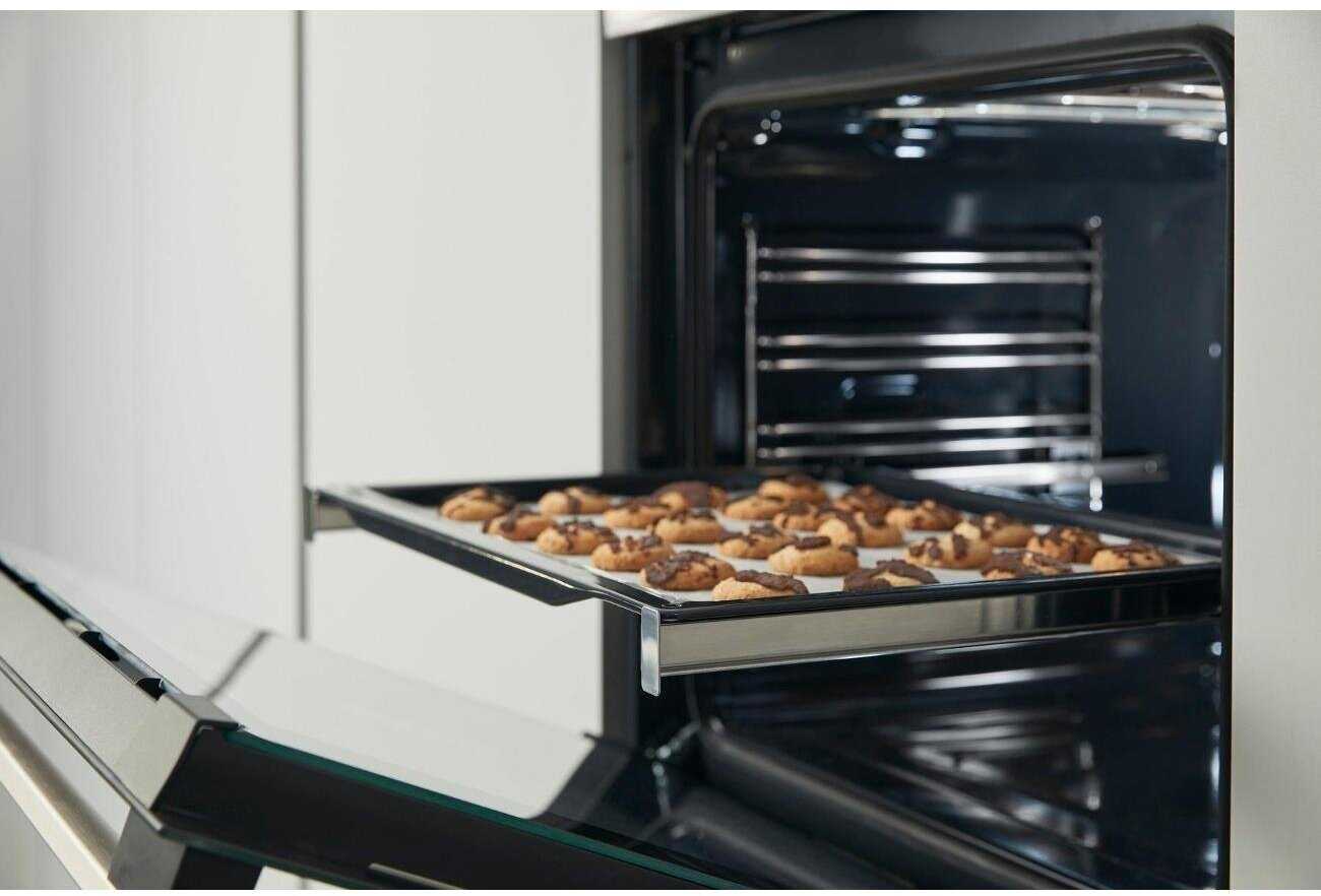 Дверца с 4-слойным стеклом и ручки остаются прохладными даже при максимальной температуре, что предотвращает ожоги и делает использование безопасным для детей. Пользователи с несколькими детьми отмечают, что панель не нагревается, а изоляция держит тепло внутри. Телескопические направляющие позволяют выдвигать противни без риска опрокидывания. Это особенно важно для активных семей, где готовка происходит часто. -