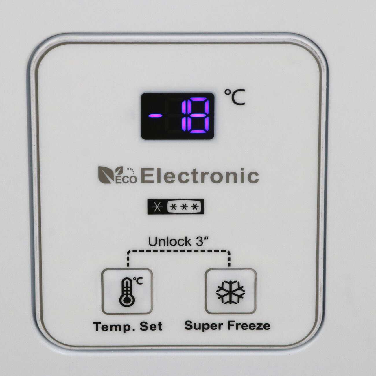 Управление температурными режимами реализовано через электронную панель с цифровым дисплеем. Пользователи отмечают простоту и интуитивную понятность управления, однако некоторые владельцы указывают на относительно мелкий шрифт отображения температуры. Согласно технической документации, дисплей показывает установленную целевую температуру, а не фактическую внутри камеры. Регулировка осуществляется с помощью четко обозначенных кнопок, что обеспечивает точную настройку рабочих параметров. -