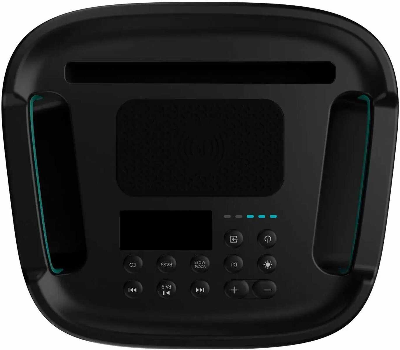 Встроенная панель поддерживает стандарт Qi и работает с устройствами вроде iPhone 7 и выше, но не со всеми моделями Android. Пользователи отмечают удобство подзарядки "на ходу" во время вечеринок, однако скорость зарядки средняя – быстрее, чем от USB-порта колонки, но медленнее сетевого адаптера. -