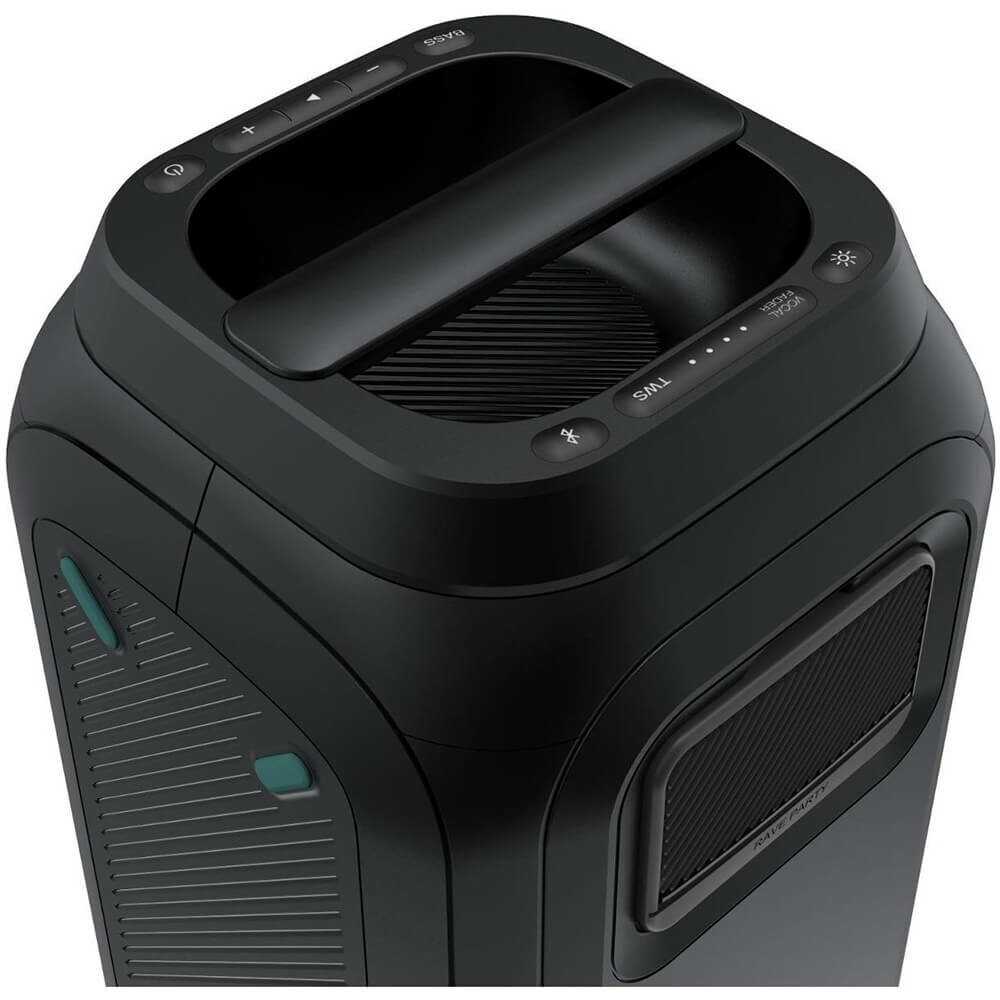 Колонка обладает яркой и красочной многорежимной RGB-подсветкой, которая создает праздничную атмосферу, особенно в вечернее время. Критичным для некоторых пользователей является тот факт, что подсветка работает не в такт музыке, а в собственном, независимом режиме. Ее можно полностью отключить, если это необходимо, с помощью отдельной кнопки на панели управления.