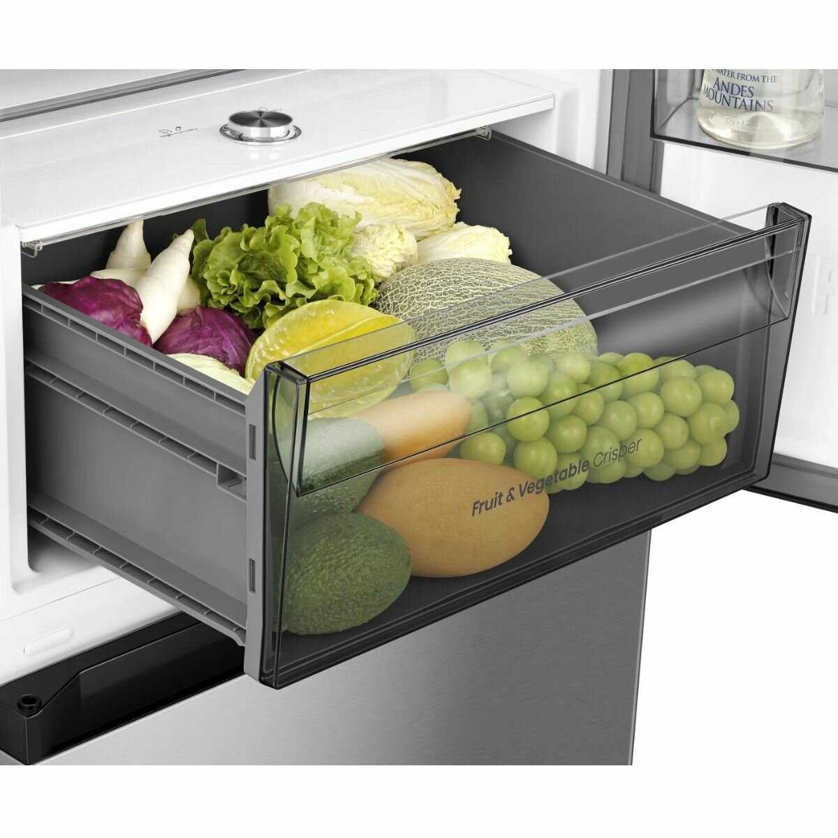 Регулировка влажности в овощном ящике, металлическая задняя стенка, лучше старого холодильника сохраняет и распределяет по полкам холод