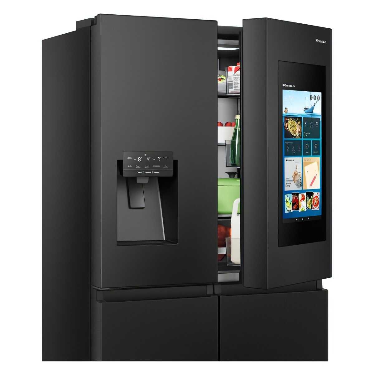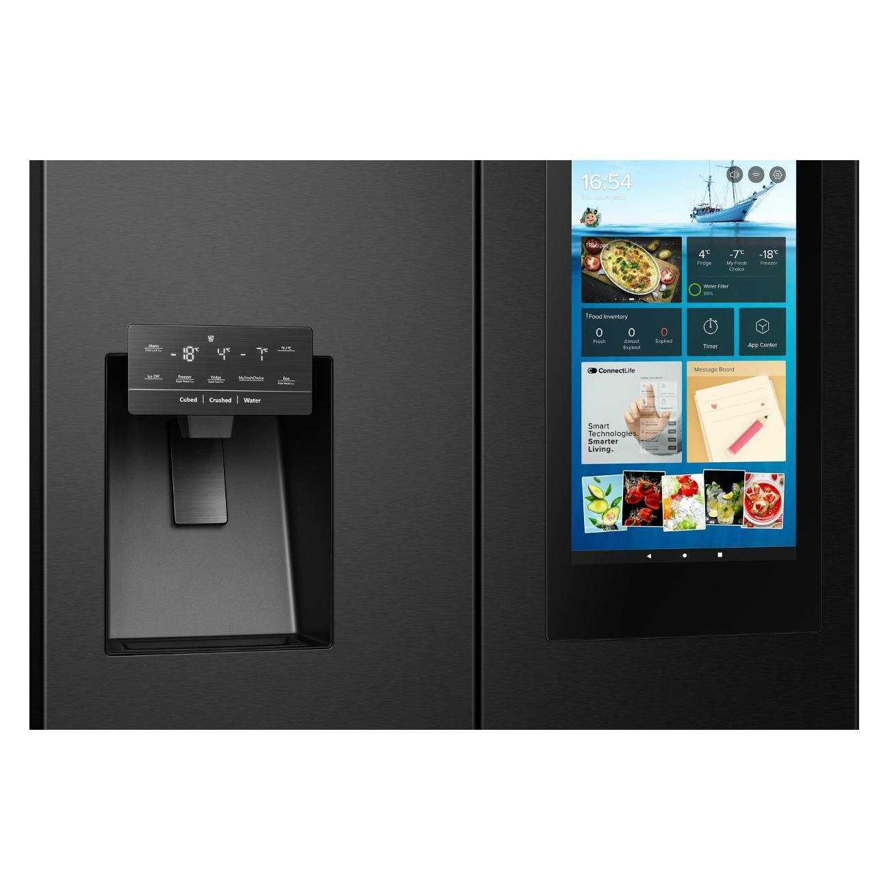 - Сенсорный экран на дверце служит интерфейсом для просмотра рецептов, создания списков покупок, заметок для семьи и отображения фотогалереи.