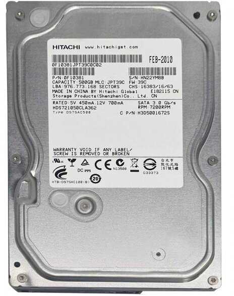 2 отзывов пользователей o Hitachi HDS721050CLA362 (500ГБ)